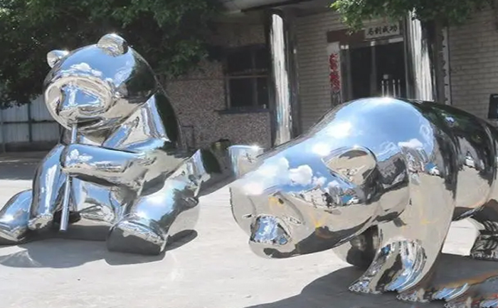 中國不銹鋼動物雕塑起源于工藝美術,因此大部分動物雕塑作品具有很強的裝飾性和實用性。不銹鋼動物雕塑已經深入人們的生活中,為大家的生活休閑娛樂增添了不少樂趣,也為大家生活環境增添了一份景觀。不銹鋼大熊貓雕塑作為以國寶大熊貓為基礎制造出的雕塑,同樣具有極高的受歡迎度。